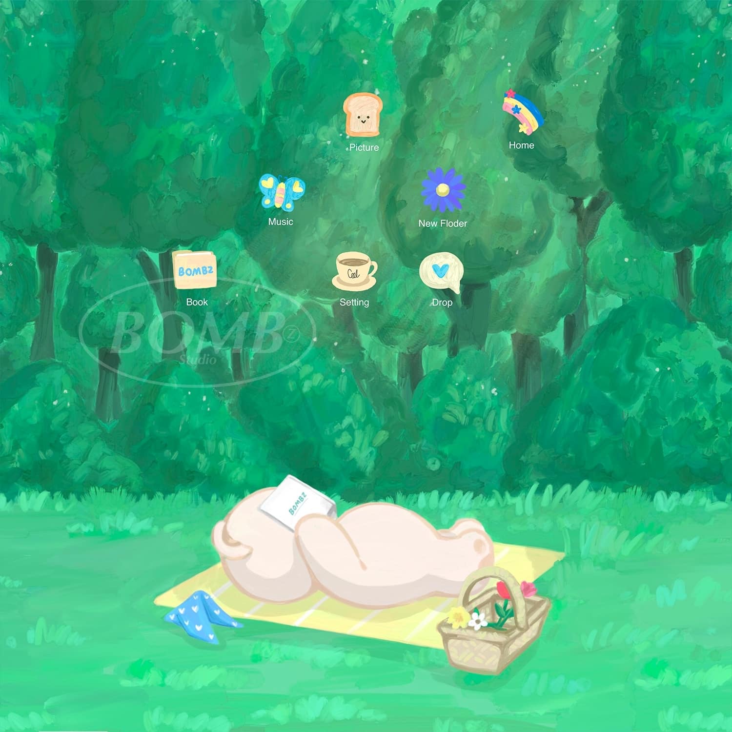 Bear’s vacation in a romantic flower field That will help your screen work to rest your eyes with green that is friendly to your eyes.