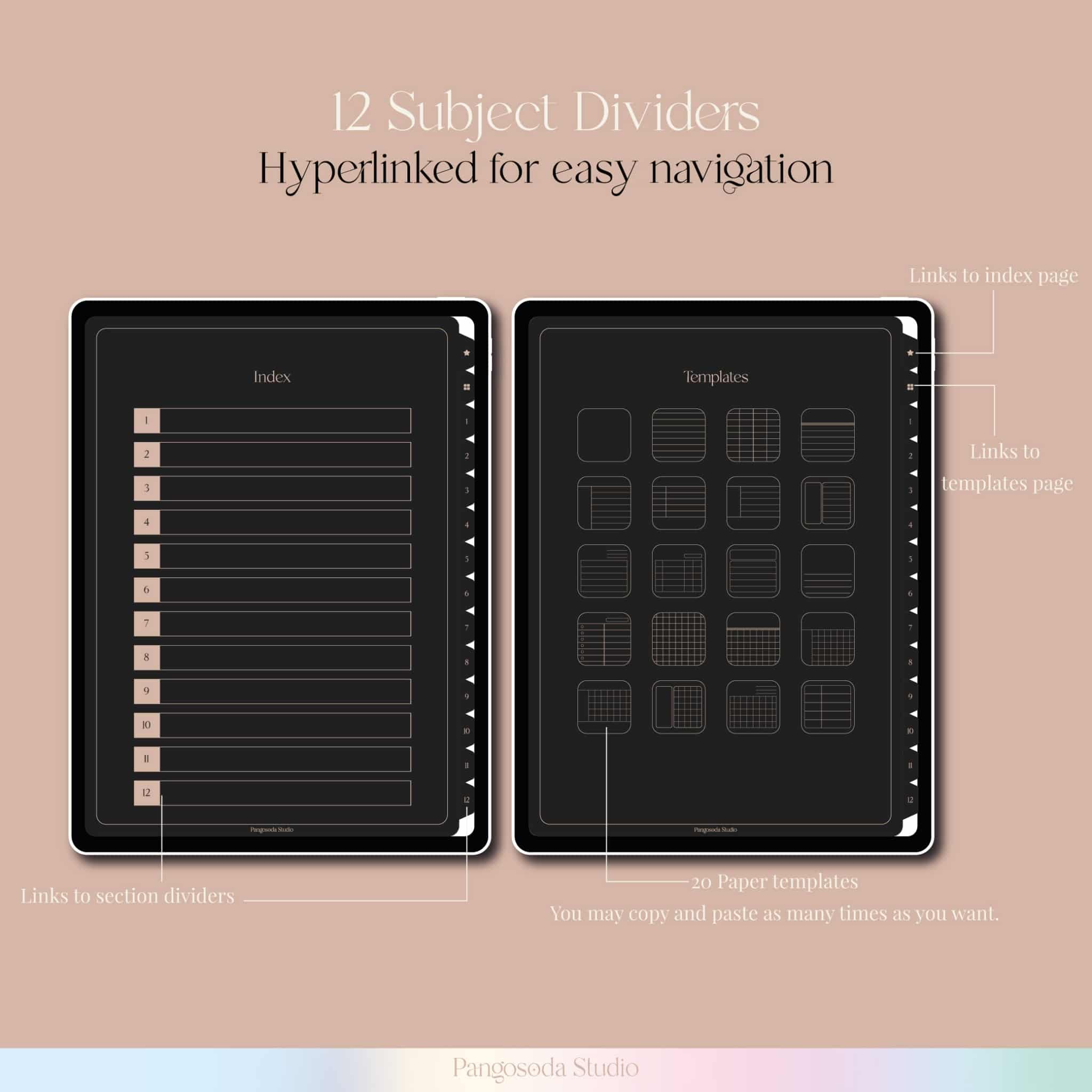 This digital notebook with 12 subjects will help you organize your notes.
