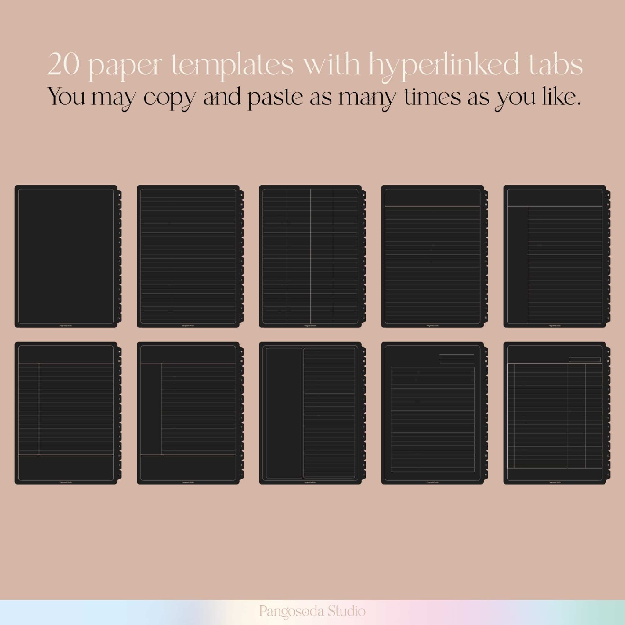 -Choose from 20 different paper templates.you can copy and paste to wherever you want in the notebook (as many times as you want).