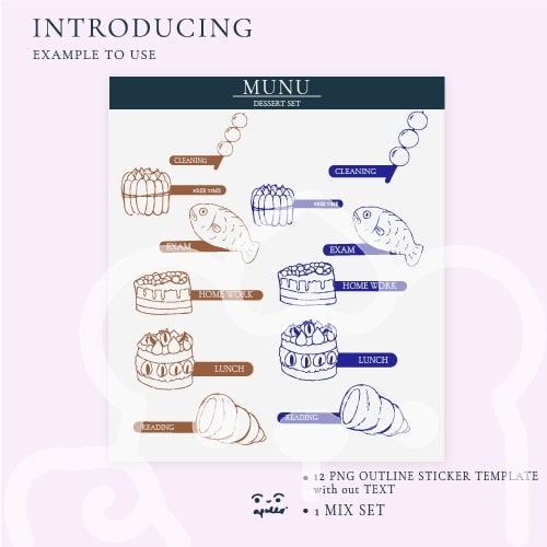 เมนูของหวานแด่คนที่รักและชื่นชอบในเมนูของหวาน ในชุดนี้จะประกอบไปด้วย 40 รูป PNG Sticker Set ไฟล์ พร้อมใช้งาน