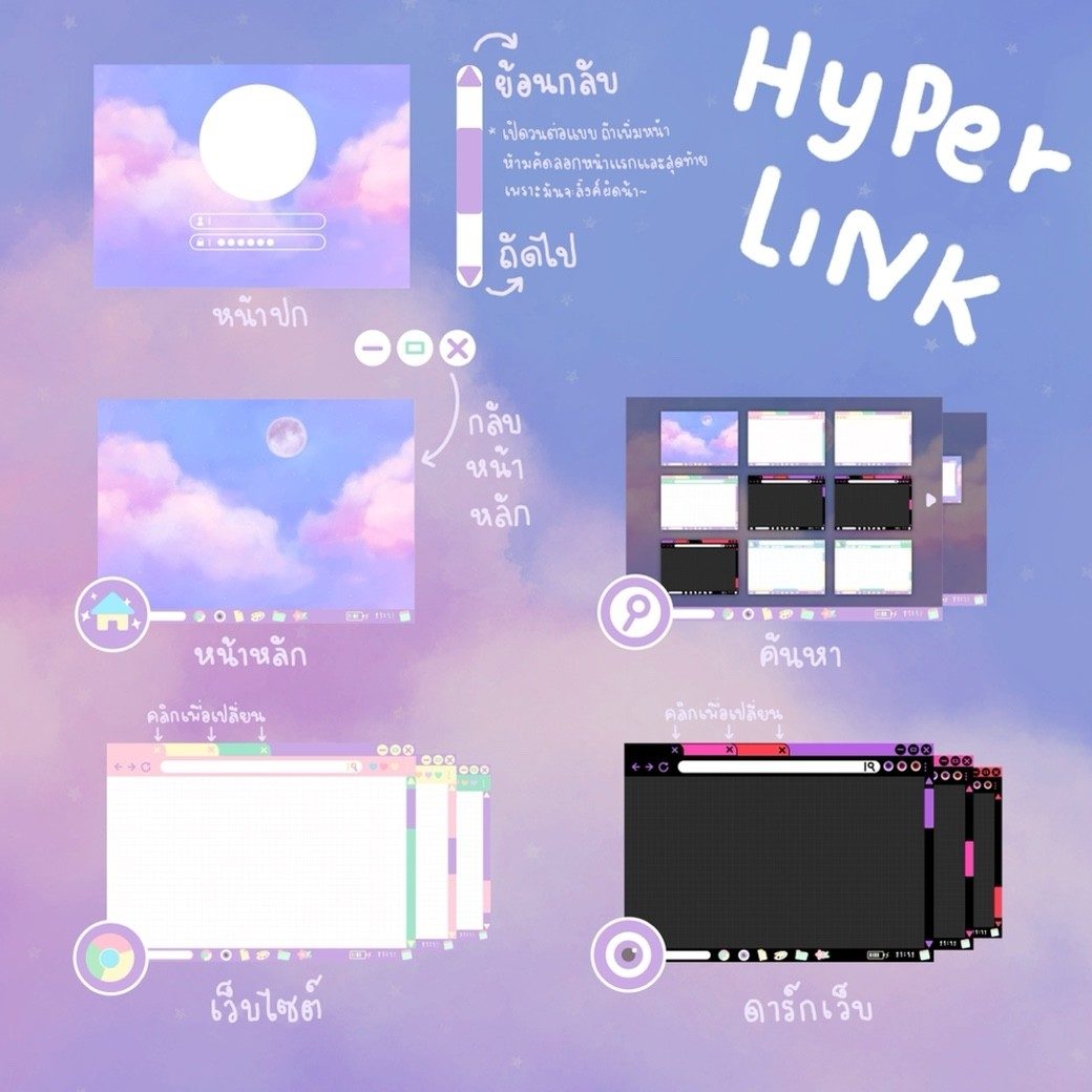 DIGITAL NOTEBOOK นี้ได้แรงบันดาลใจมาจากการใช้คอมพิวเตอร์ในชีวิตประจำวัน และมี HYPERLINK หลายจุดเพื่อความสะดวกและสนุกในการจดบันทึกเหมือนกับกำลังใช้คอมพิวเตอร์