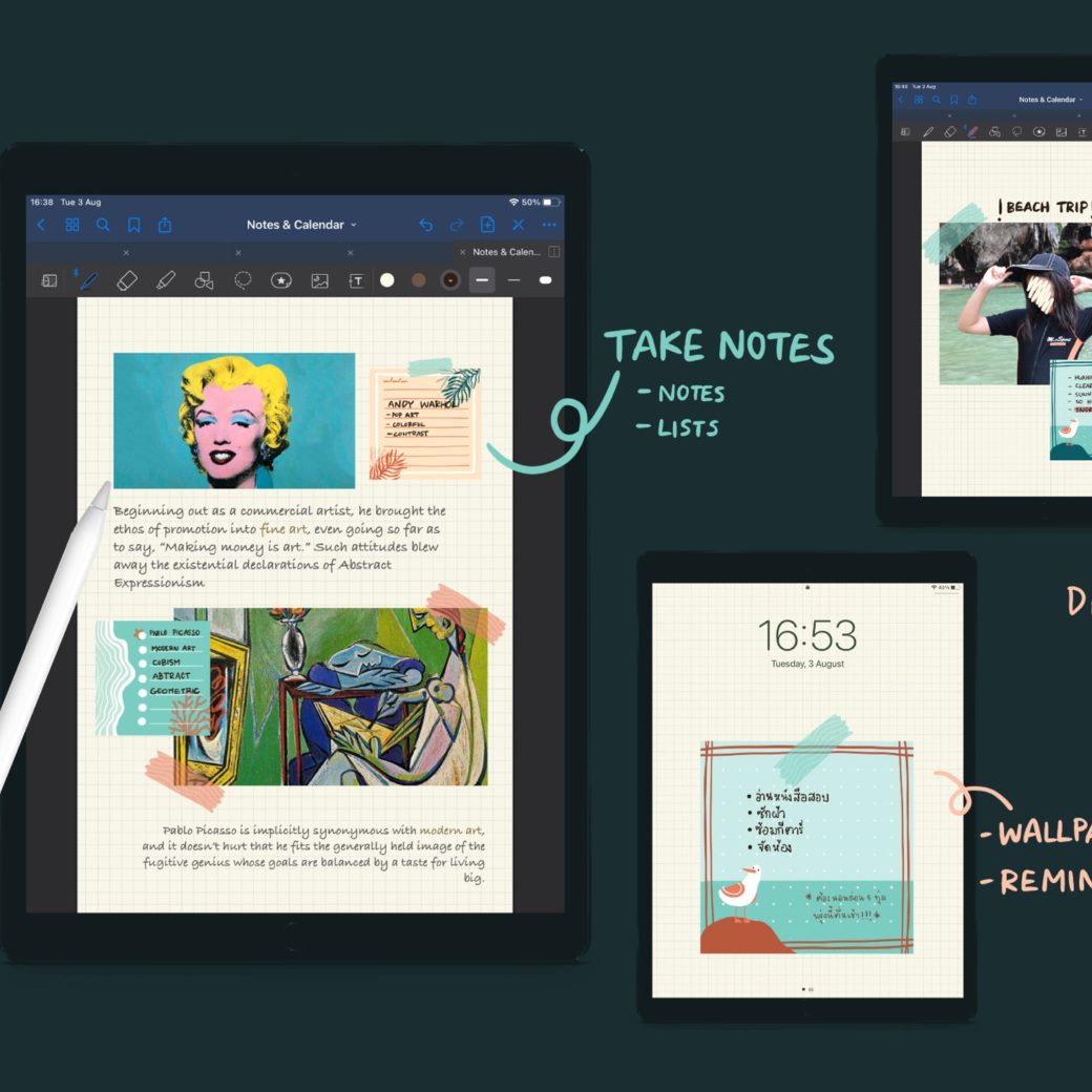 โทนสีใช้ได้กับหลายงาน นำไปจดบันทึกเพิ่มเติมเสริมเนื้อหา หรือตกแต่งบทเรียน หรือจะเขียนลิสต์ตั้งเป็นวอลเปเปอร์ไว้ช่วยเตือนก็เก๋ไม่ซ้ำใคร! <จะนำไปปริ้นออกมาเท่าขนาดโพสต์อิสก็ใช้งานได้เหมือนกันนะะ>